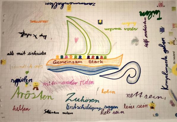 Zur Überschrift „Gemeinsam stark“ entstand ein Plakat, auf dem alle hinschreiben durften, was dazu wichtig ist. Mit einem Teamturm veranschaulichte uns Frau Klingebiel,